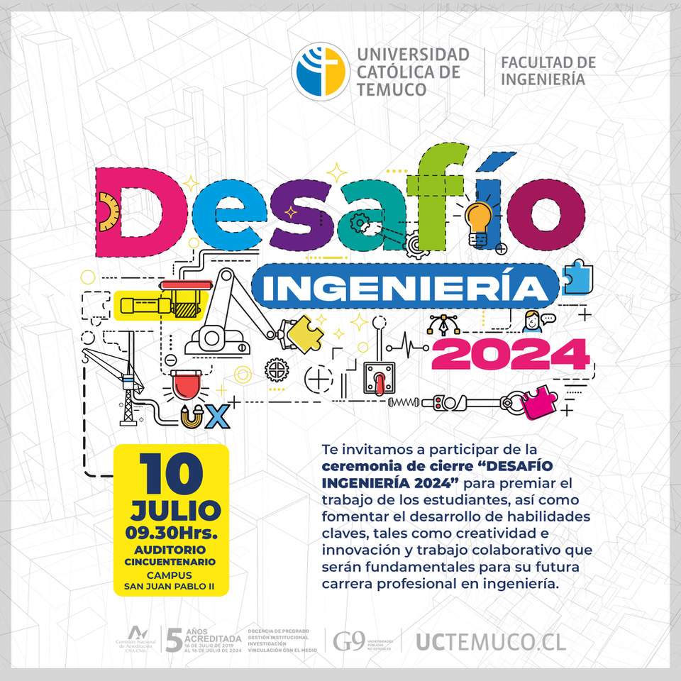 La Facultad de Ingeniería de la Universidad Católica de Temuco (UCT) invita a toda la comunidad a la Ceremonia de Premiación del “Desafío en Ingeniería 2024”. El evento será el […]