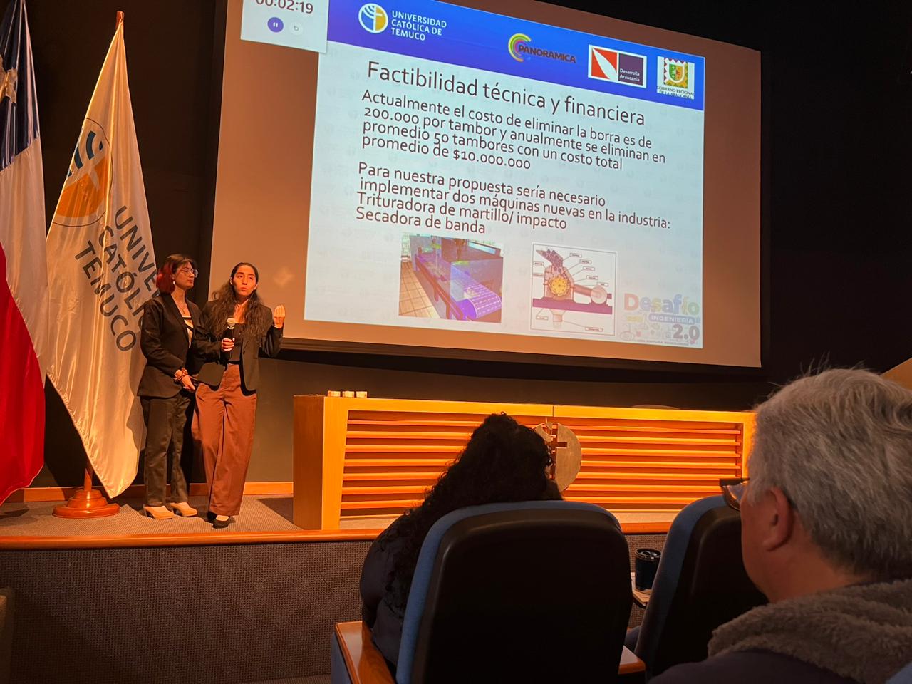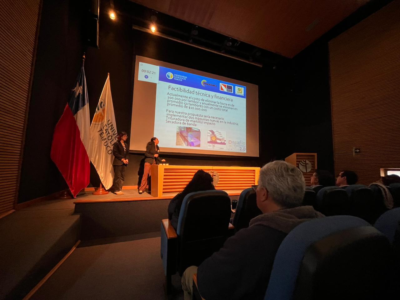 Una vez presentados cada uno de los proyectos innovadores, el jurado compuesto por Paolo Chaparro, CEO y fundador de Pinturas Panorámica, por Sebastián Hunter, Gerente General de la Corporación de Desarrollo Araucanía, por la académica de la UC Temuco, Patricia Oliveira y por Diego Villalobos jefe de la planta de Pinturas Panorámica, se procedió a la entrega de los estímulos.