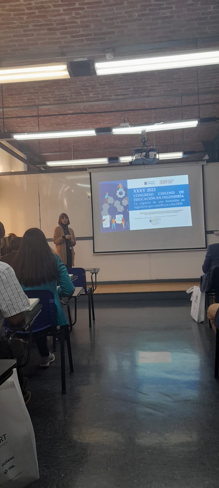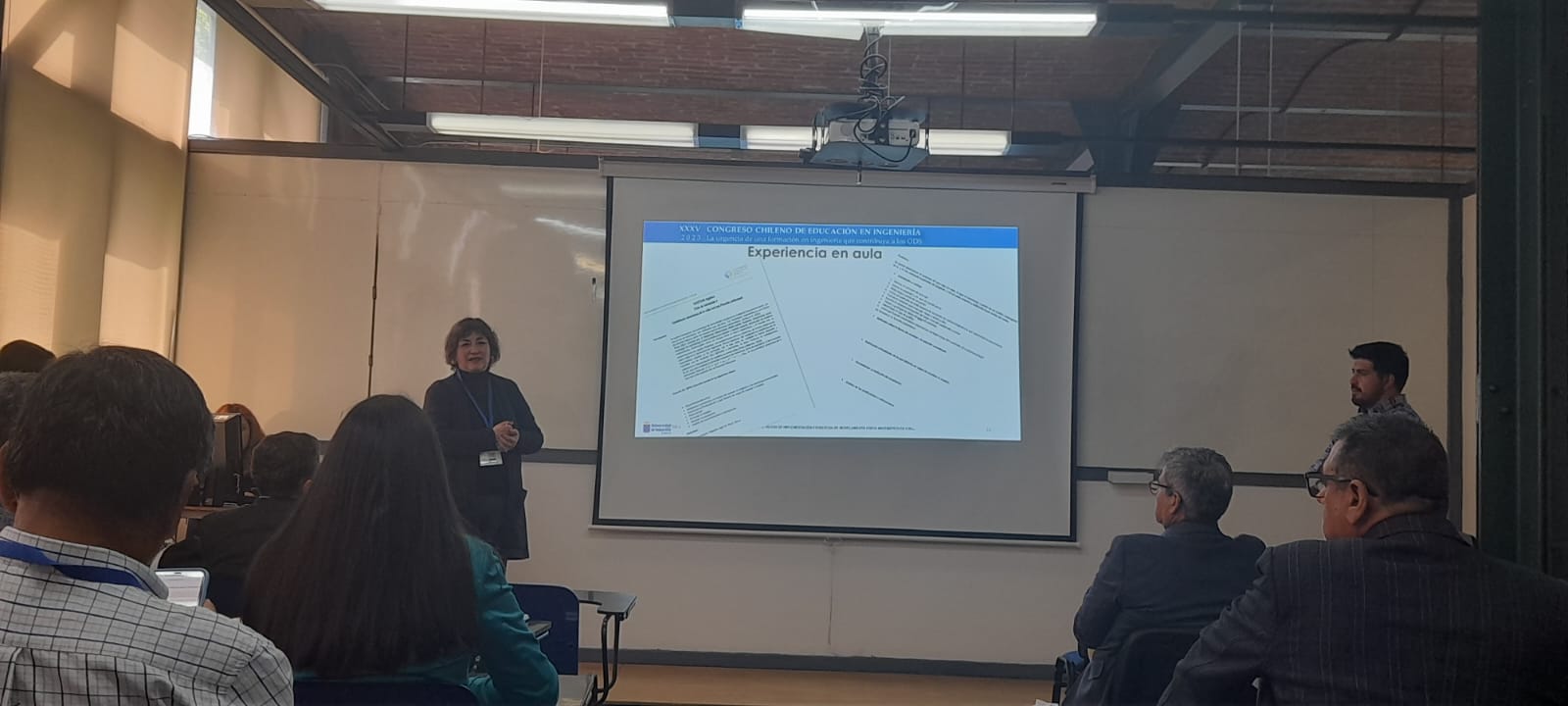 Nuestra delegación de la Facultad de Ingeniería estuvo compuesta por cuatro académicos, cada uno presentando trabajos relacionados con proyectos de innovación y aprendizaje. La Mg. Soledad Yáñez y la Mg. Valeria Carrasco presentaron el trabajo titulado “Experiencia piloto de Implementación Estrategia de Modelamiento Físico Matemático en cursos de Álgebra de Pregrado”. Este trabajo se vincula con el Proyecto de Innovación en Docencia (PID) de la Comunidad de Aprendizaje de Matemáticas y Física, donde también participan el profesor Jose Luis Barahona y el profesor Vicente Sandoval como profesor invitado. El proyecto, denominado “Hacia el desarrollo de la Creatividad y el Pensamiento Crítico en Estudiantes de Pregrado de Carreras de Ciencias e Ingeniería mediante la Puesta en Marcha de una Estrategia Metodológica Basada en el Modelado Físico Matemático”, se destaca por su enfoque en la promoción de la creatividad y el pensamiento crítico en estudiantes de ingeniería.