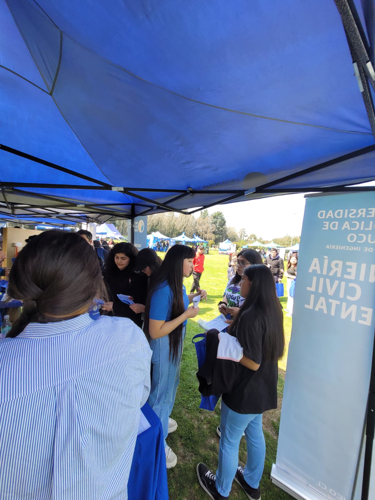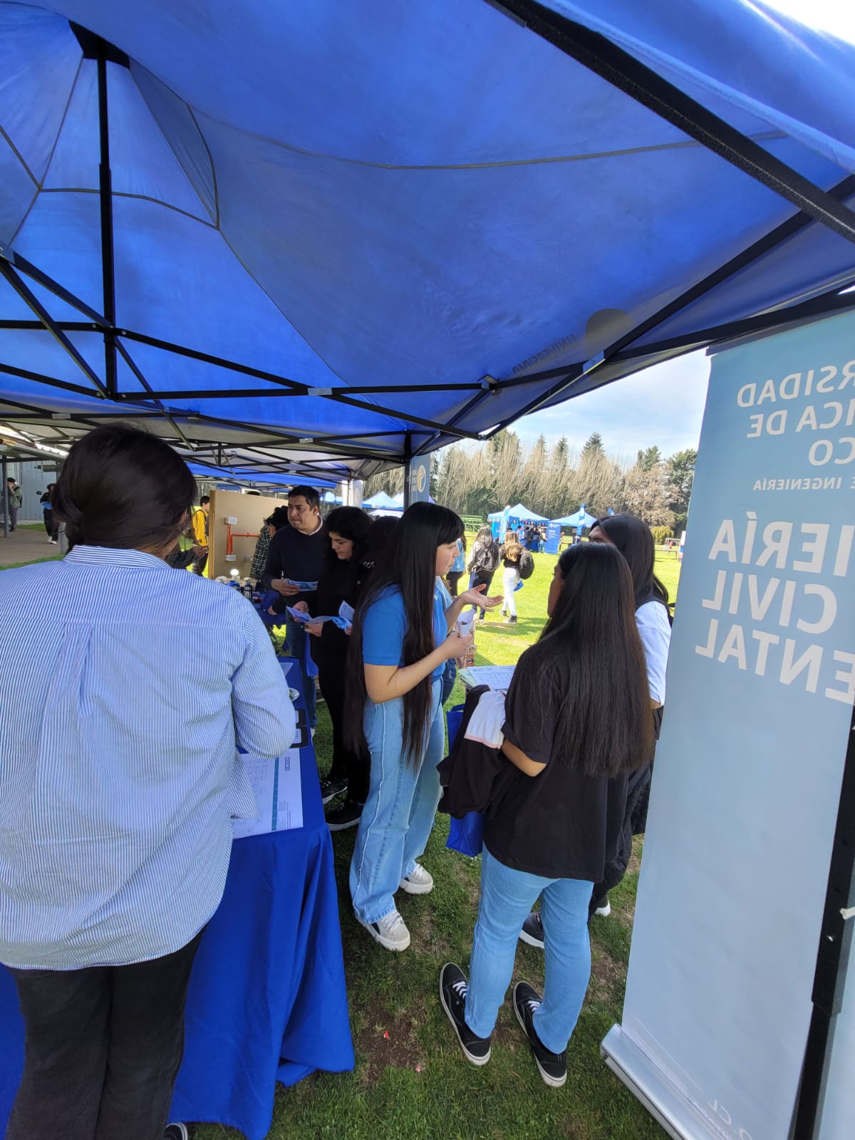Además de las presentaciones en salas de conferencias, se organizaron stands al aire libre que permitieron a los asistentes interactuar de manera directa con los académicos y estudiantes universitarios. Este formato promovió un bonito intercambio de ideas e información en torno a las carreras de la Facultad de Ingeniería y sus posibilidades.
