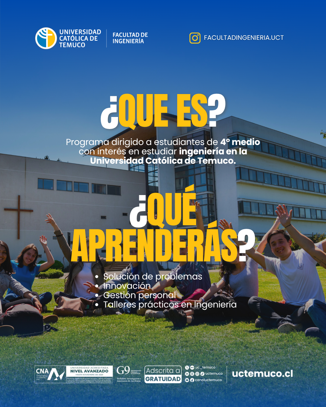 Con el propósito de acercar la ingeniería y la geología a estudiantes de enseñanza media, la Facultad de Ingeniería de la Universidad Católica de Temuco abrió una nueva convocatoria para su Semillero de Talentos, programa formativo orientado a jóvenes de 4° medio interesados en continuar estudios en alguna de las carreras de la Facultad.