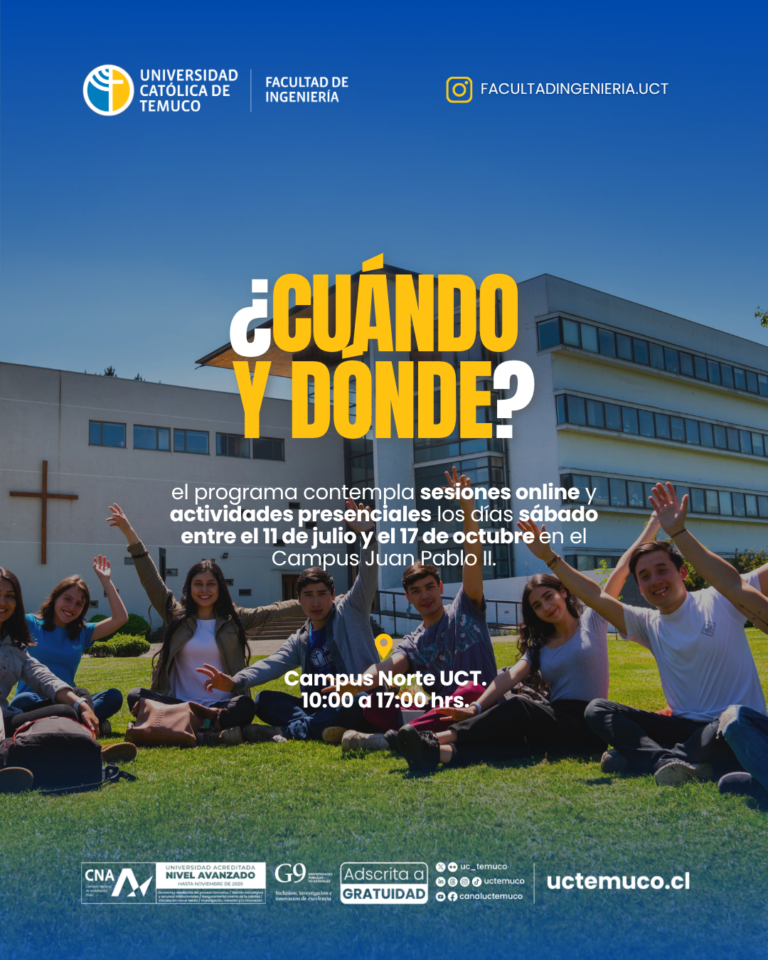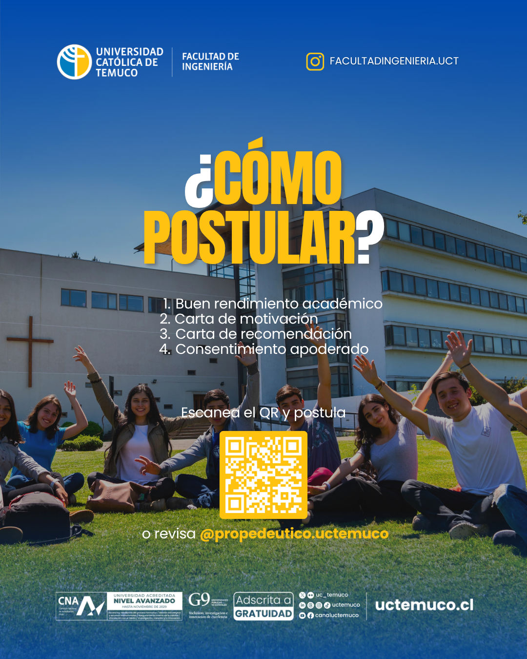 La Facultad de Ingeniería invitó a las y los interesados a revisar más información y postular a través de sus canales oficiales, destacando que el Semillero constituye una valiosa puerta de entrada para conocer de cerca sus carreras de ingeniería y geología.